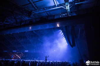Le public est survolté, bras en l'air, à caresser les faisceaux lumineux.